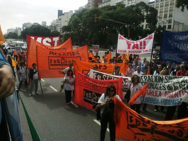 Se cumplió con éxito la movilización al Ministerio de Salud convocada en reclamo de un salario digno, trabajo decente, libertad sindical y el 82% móvil.