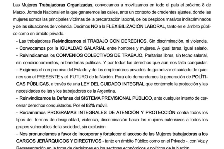 1857 – 8 de Marzo – 2017 // Día Internacional de las Mujeres Trabajadoras – Movilización Nacional en Unidad