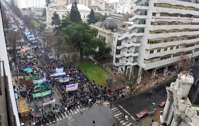 El miércoles 4 de julio miles de compañeros participaron en La Plata de la protesta contra el ajuste del gobierno provincial y nacional. La convocatoria de los trabajadores estatales fue organizada en respuesta al anuncio del desdoblamiento del pago del aguinaldo.
