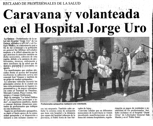 Caravana y volanteada en el hospital Jorge Uro