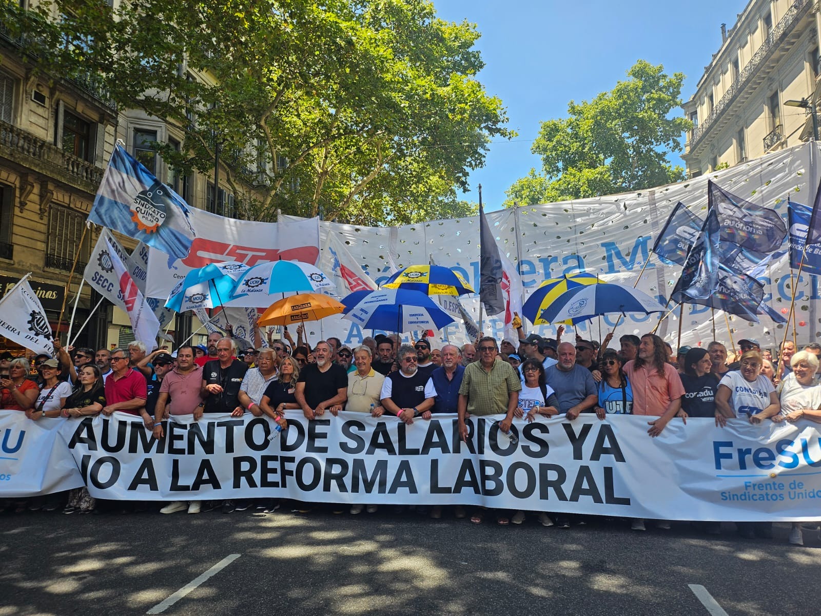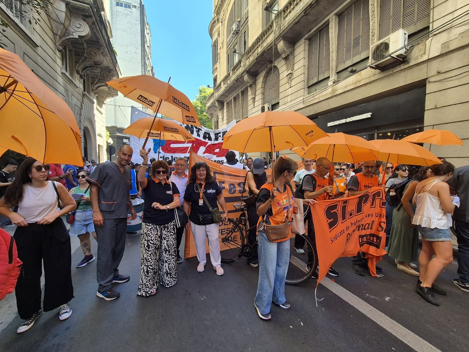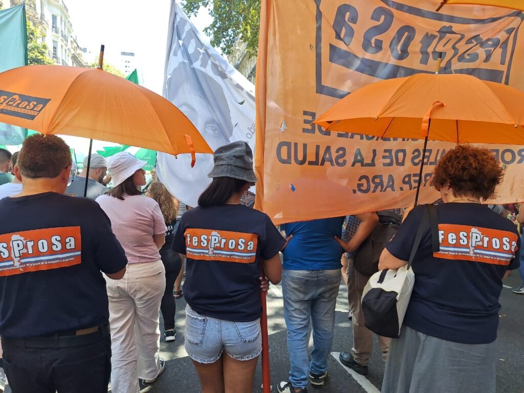 La Federación Sindical de Profesionales de la Salud (Fesprosa) se movilizó al Congreso de la Nación, junto con el Frente de Sindicatos Unidos, que debutó en Córdoba la semana pasada y tuvo su segundo hito ayer con una masiva marcha en Rosario.