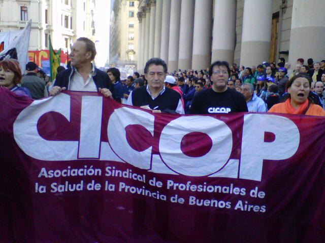 Dirigentes de CICOP y FESPROSA participaron de la movilización convocada en reclamo de la derogación al impuesto al salario y los topes en las asignaciones familiares. Estas banderas, junto al 82% móvil, las paritarias sin techo y la plena libertad sindical, han sido banderas históricas de la Federación y del gremio de la provincia de Buenas Aires.
