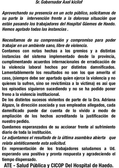 12 de agosto | La iniciativa surgió de una asamblea convocada por los gremios con presencia del presidente de la seccional Erill de Escobar de CICOP Alejandro Márquez realizada en nuestro hospital el día 6 de agosto. Se analizaron distintas situaciones provocadas por las máximas autoridades del hospital.