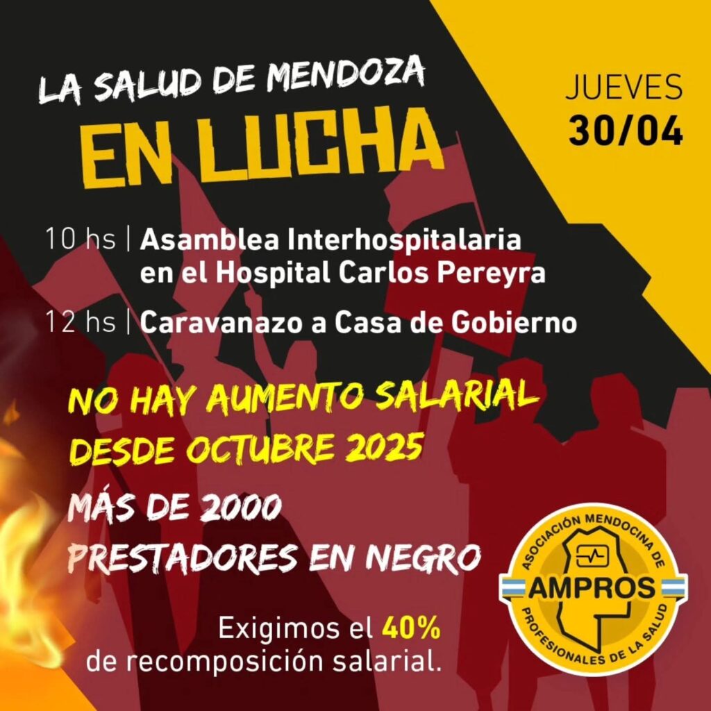 Mendoza se suma a la convocatoria este jueves con una asamblea interhospitalaria y un caravanazo. No perciben un aumento salarial desde octubre del año pasado y hay más de 2 mil prestadores en negro. Exigen una recomposición del sueldo del 40%.