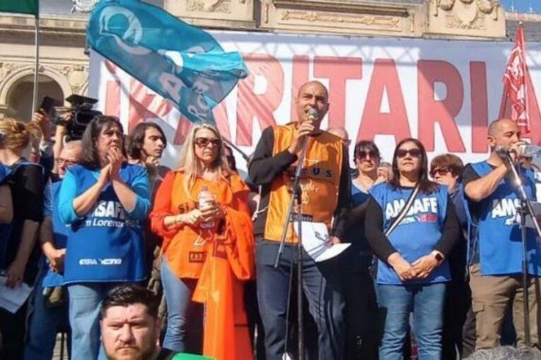 Paro y movilización de SIPRUS En el marco del paro por 48 horas, SIPRUS – Fesprosa participó del masivo acto unitario por reapertura de paritarias, realizado en la ciudad de Santa Fe frente a Gobernación.