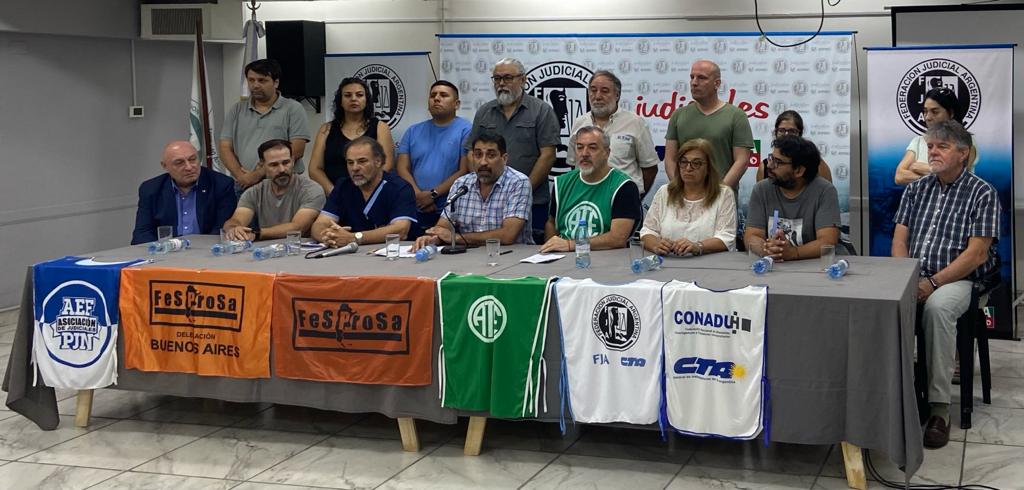 El día de hoy, en la sede de la Federación Judicial Argentina, representantes de gremios estatales y del sector público anunciaron en conferencia de prensa el lanzamiento del Frente de Gremios Estatales y Empresas Públicas. El flamante espacio intergremial está compuesto por la Federación Sindical de Profesionales de la Salud (Fesprosa), la Asociación de Trabajadores del Estado (ATE), la Federación Judicial Argentina, la Federación Nacional de Docentes, Investigadores y Creadores Universitarios (Conadu Histórica) y una veintena de sindicatos más. Además, comunicaron que ya definieron una primera medida de fuerza para el lunes 15 de enero, la cual han dado en llamar Jornada Nacional de Lucha en Defensa del Estado y el Empleo Público.
